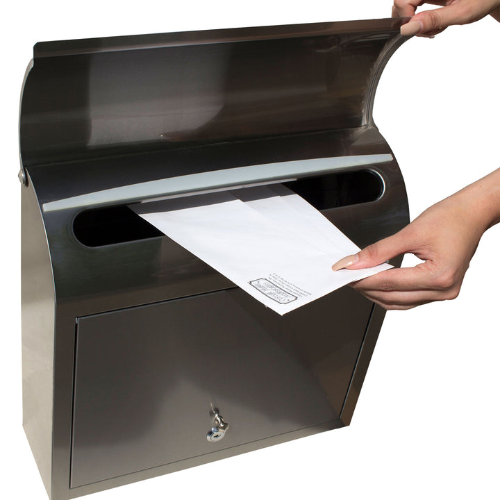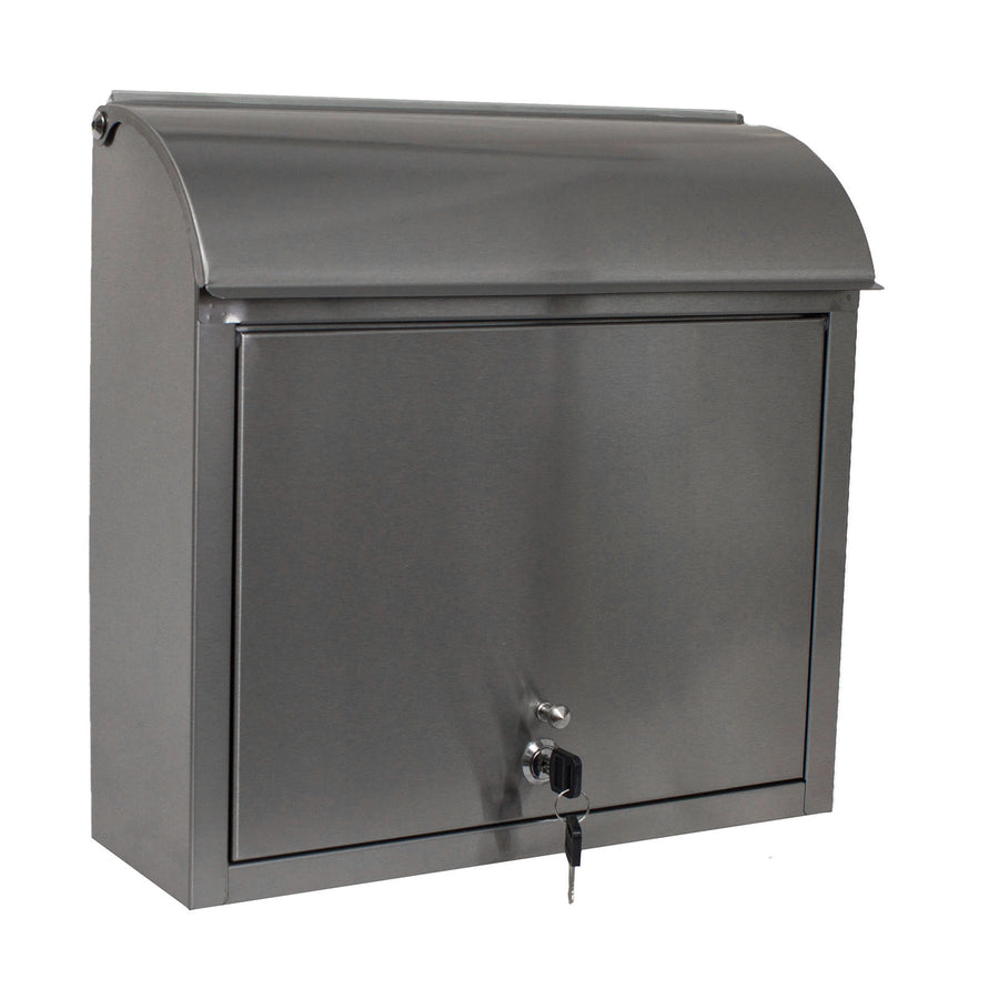 This mailbox features a curved top, which gives it an elegant look. It is made of stainless steel, which gives durability to this mailbox. It features a front locking door that opens to easily retrieve your mail.